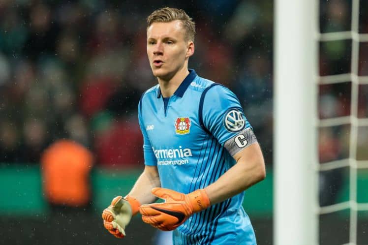 LEVERKUSEN, GERMANY - FEBRUARY 06: Goalkeeper Bernd Leno of Leverkusen looks on during the DFB Cup match between Bayer Leverkusen and Werder Bremen at BayArena on February 6, 2018 in Leverkusen, Germany. (Photo by TF-Images/TF-Images via Getty Images)