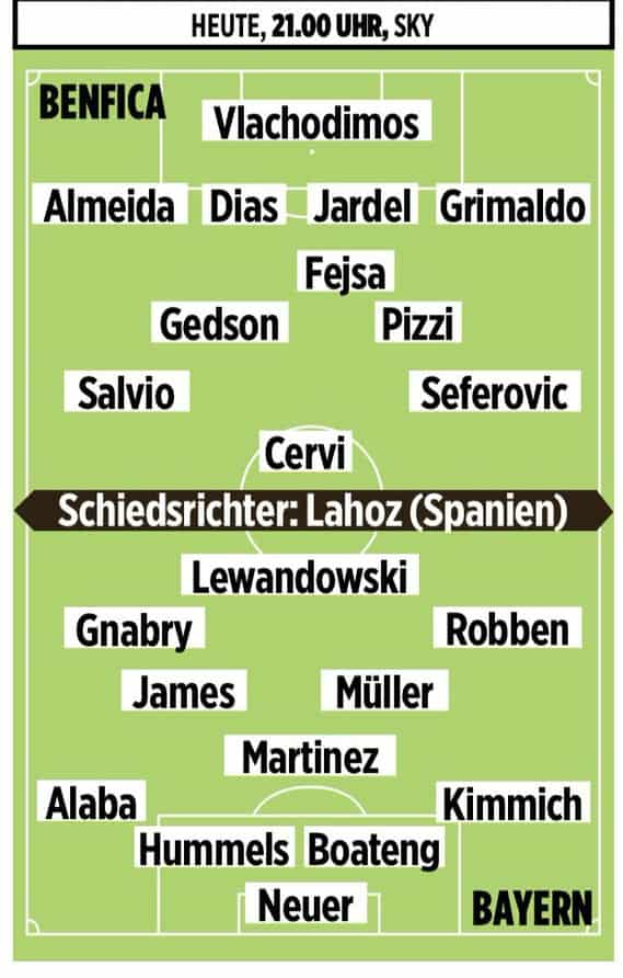 BILD. Benfica - Bayern Munich. Probable lineups
