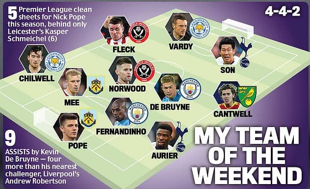 Midfielders: Cantwell (Norwich City), De Bruyne (Manchester City), Norwood, Fleck (Sheffield United)