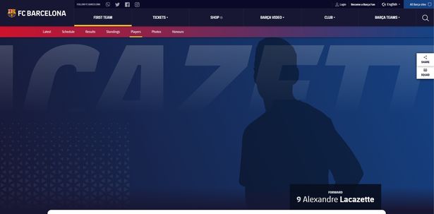 An image from Barcelona's official website has been spread across Twitter. The picture is a profile page for Alexandre Lacazette and he's listed as a first-team player. Although he does have the no.9 shirt which is currently occupied by Luis Suarez.