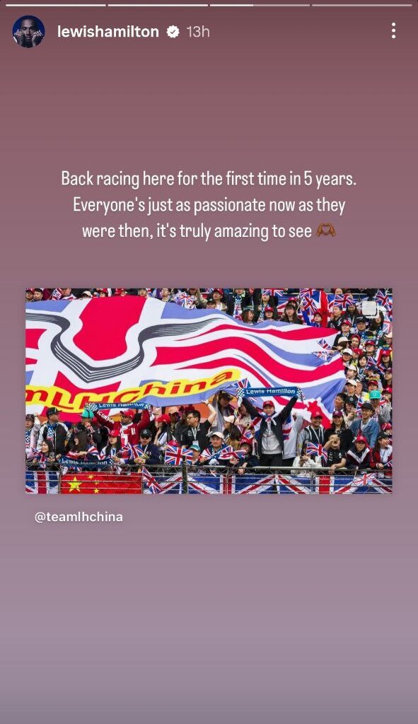 Ahead of the Chinese GP, Lewis Hamilton has taken to Instagram Stories to share a message.