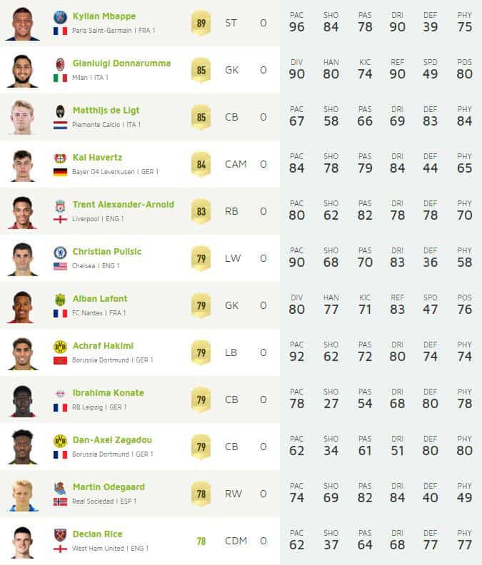 Including such players like Kylian Mbappe, Matthijs De Ligt, Kai Havertz, Trent Alexander-Arnold, Dayot Upamecano