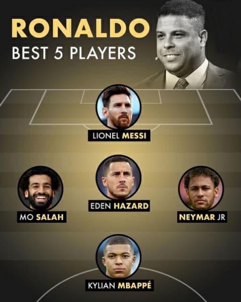 Легендарный игрок сборной Бразилии и мадридского «Реала» Роналдо составил сборную из 5-и игроков. Команда Роналдо выглядит следующим образом: