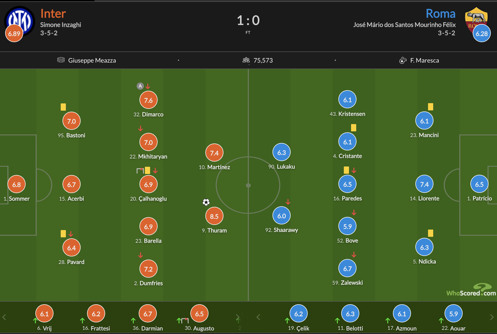 В матче 10 тура чемпионата Италии «Интер» на своем поле принимал «Рому».