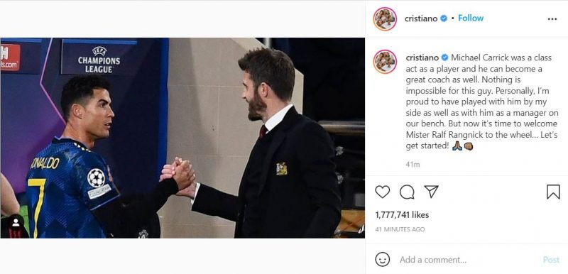 Нападающий «Манчестер Юнайтед» Криштиану Роналду прокомментировал назначение Ральфа Рангника на посту временного тренера команды. 1