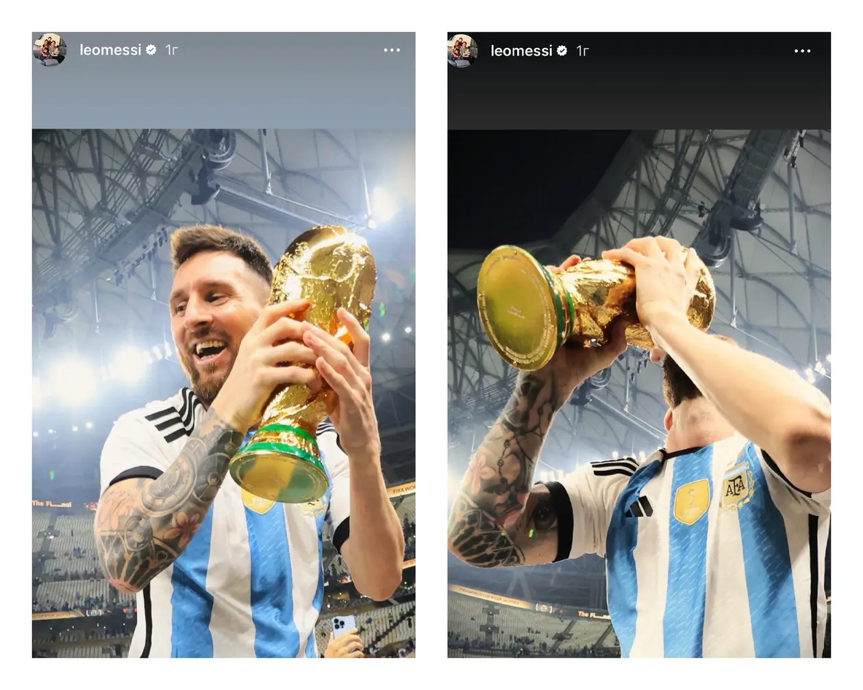 Ответ от Месси не заставил себя ждать. Аргентинец опубликовал в сторис фото с кубком мира.