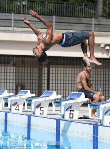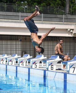 В сети попали фотографии Обамеянга, который показывает свои акробатические навыки в бассейне. Лицо Генриха Мхитаряна вызывает тревогу.