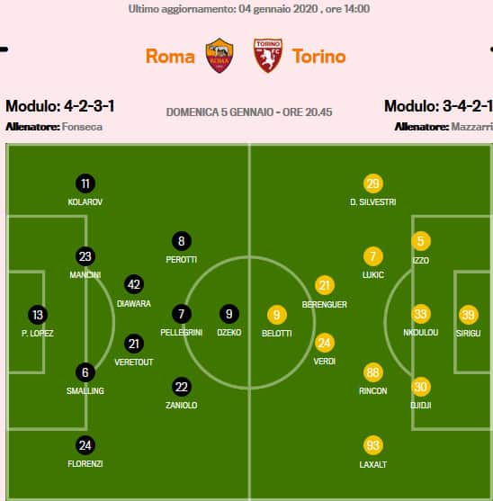 19 туре Серии А «Рома» на своем поле примет «Торино». Представляем возможный состав «Джаллоросси».