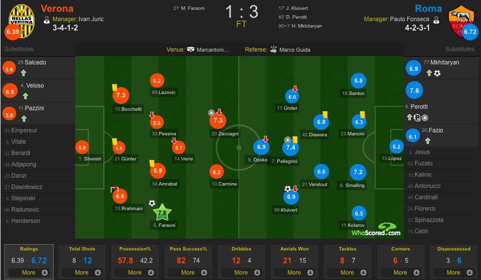 В 14 туре Серии А «Рома» на выезде обыграла «Верону» (1-3). В составе «Ромы» отличился полузащитник и капитан сборной Армении Генрих Мхитарян.