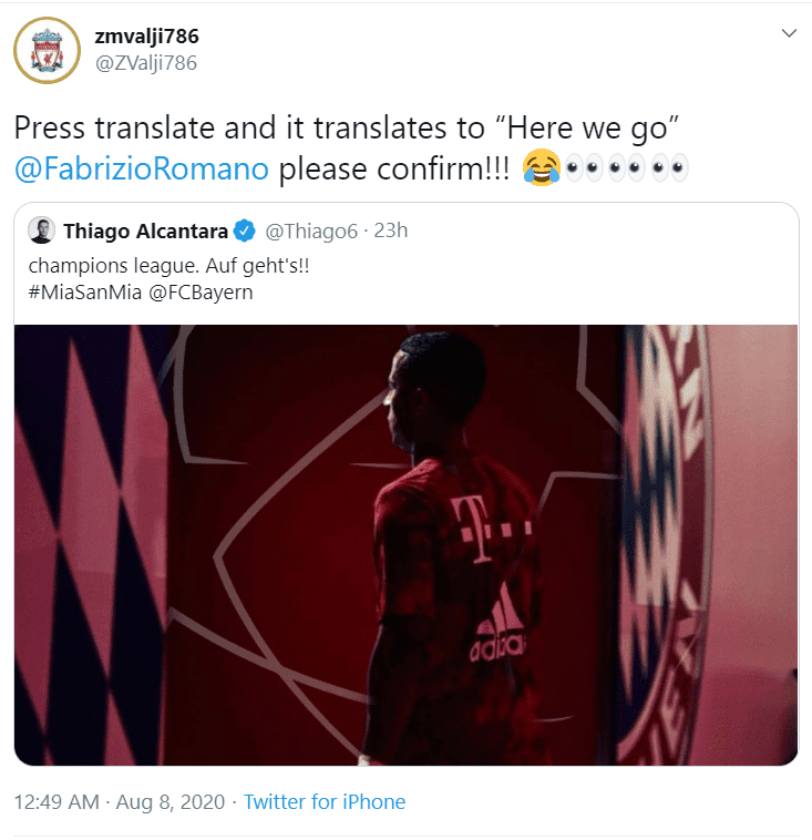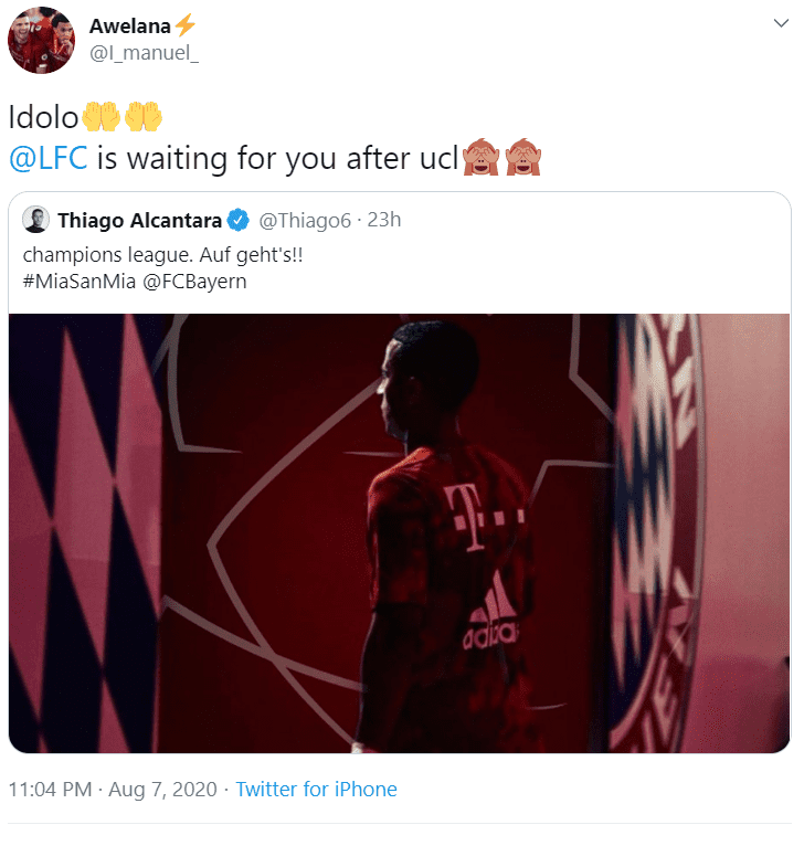 — Thiago Alcantara (@Thiago6) August 7, 2020
