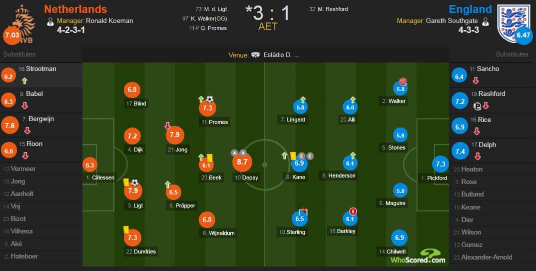 - Goal: De Ligt, Walker (og), Promes - Rashford (p)